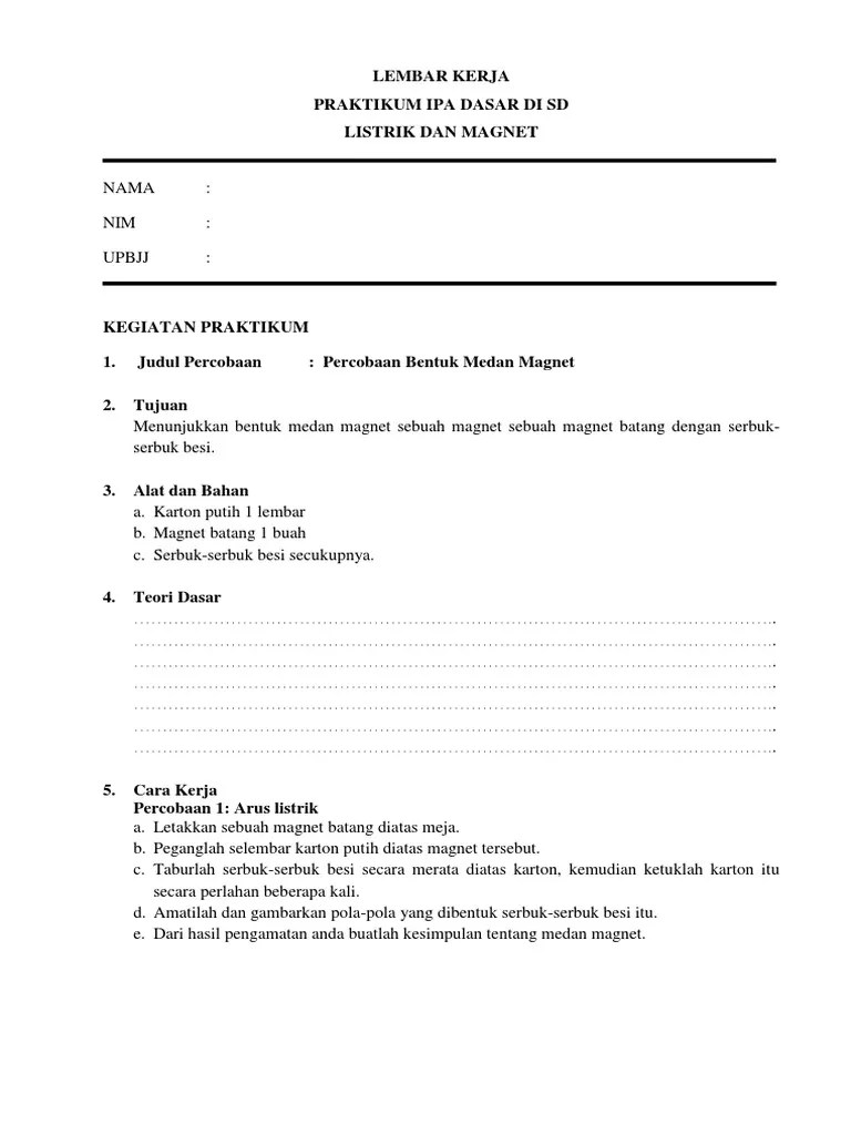 Laporan praktikum ipa modul 8 bentuk medan magnet seputar laporan. 7/15/2019 laporan praktikum medan magnet 1/9pendahuluanarus mengalir melalui sepotong kawat membentuk suatu medan magnet(m) disekeliling . Adalah suatu medan yang dibentuk dengan menggerakan muatan listrik . Simak contoh teks laporan hasil percobaan di bawah ini: Laporan akhir merupakan modul dan lembar kerja yang sudah berisi data,.